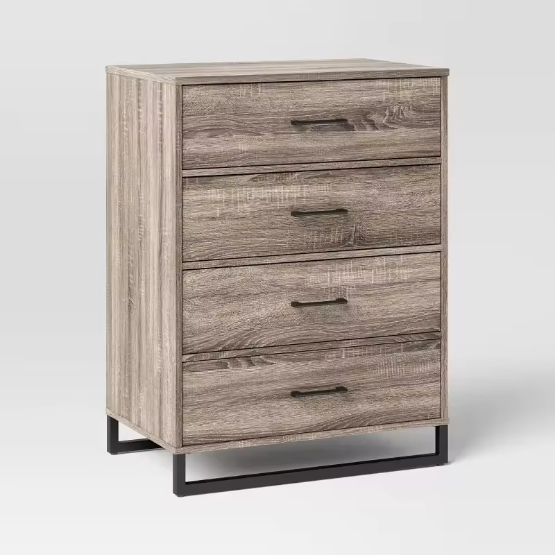 OEM & ODM Modern Rattan Dresser - 4-Drawer Wood & Metal Frame Storage Chest with Spacious Woven Compartments