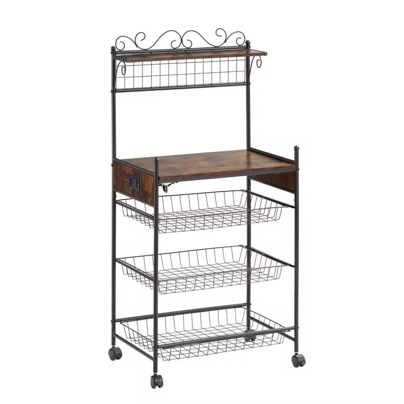 Transform your kitchen organization with this versatile 5-shelf storage rack, featuring a warm brown finish, secure locking wheels, and robust construction. Perfect for kitchens, pantries, or commercial spaces needing flexible storage that moves when you do.