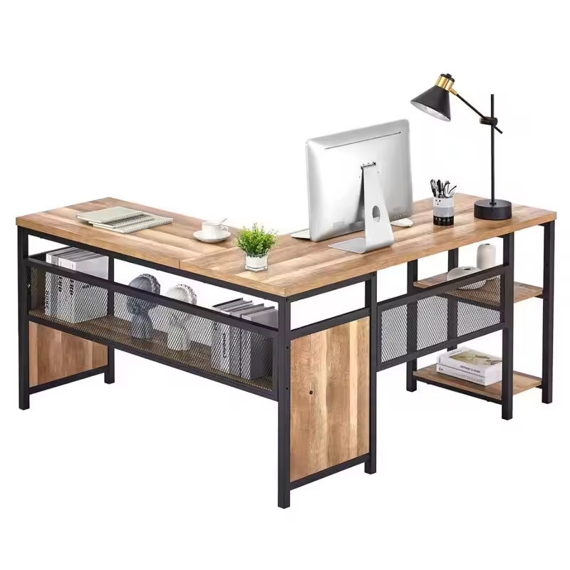 Custom Antique Color Metal Wood Double Tier TV Computer Cabinet Storage Shelf Open Shelves Factory's Bookcases Bookshelves