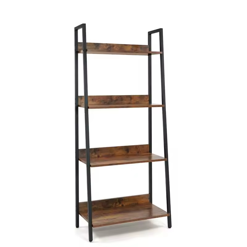 Factory ODM OEM Office Organizer 4-Shelf Ladder Bookcase with Wood & Metal for Living Room Office Balcony Kitchen Storage