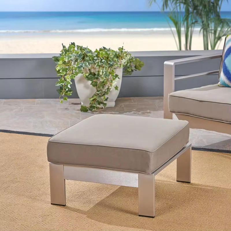 Manufacturer Custom Silver Upholstered Coral Cushioned Aluminum Modern Bedroom Living Room Furniture Sofa Ottoman